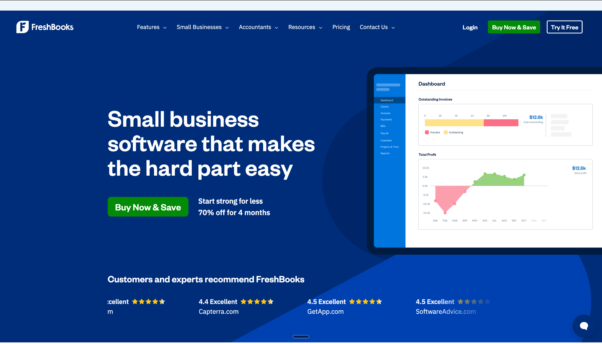 Best for: Freelancers, solo consultants, and service businesses under 10 employees where invoicing and getting paid are main priorities.