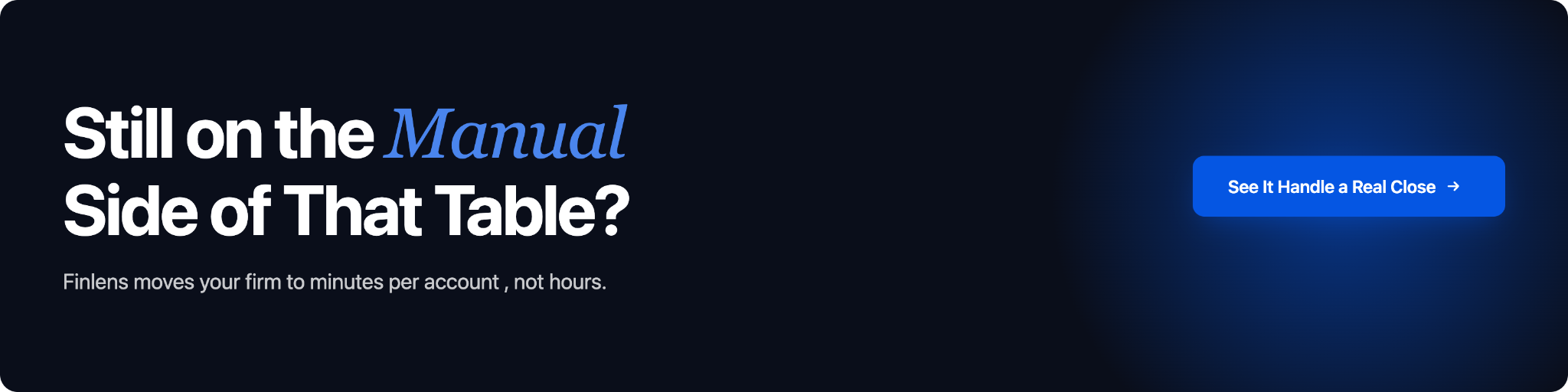 For QuickBooks Online firms, Finlens takes this further by automating categorization, reconciliation, accruals, and close workflows in a single platform that syncs everything back to QBO. No migration, no new GL just automation layered on top of the stack you already use.