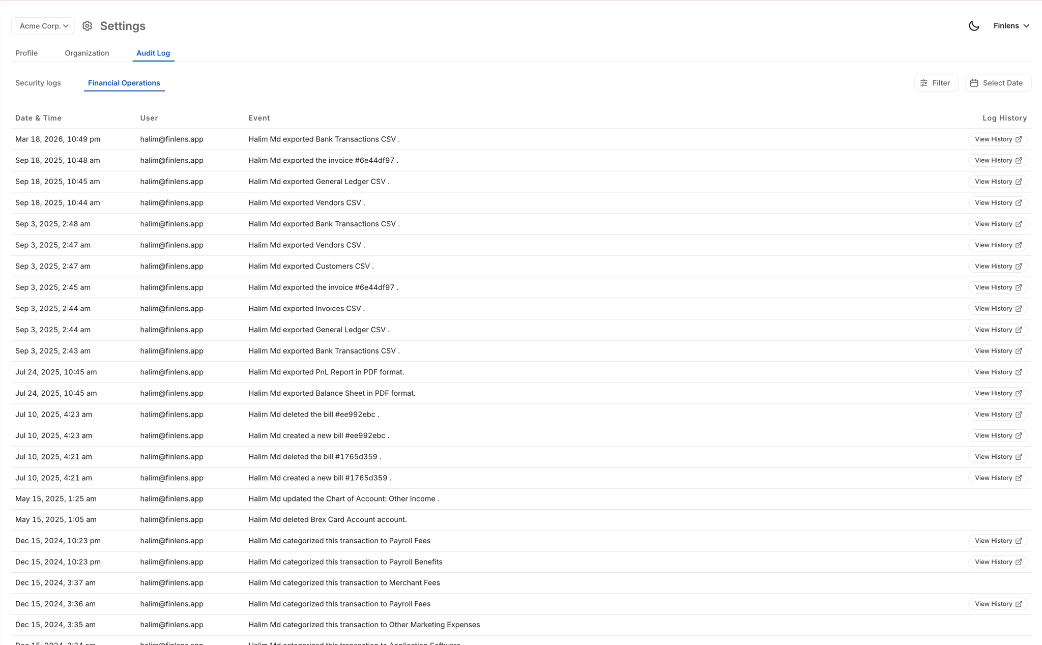 Yes. Finlens replaces error-prone manual spreadsheets with automated, consistently applied revenue recognition rules. Every schedule generation, journal entry, and categorization decision is recorded in a complete audit log — so if you face an external audit or investor due diligence, every revenue recognition event is traceable and documented without manual reconstruction.